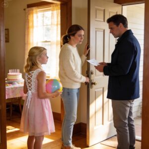 My daughter waited by the door with her party dress on — her dad never came. Then a stranger brought a wrapped gift…