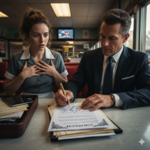 I Was a Broke Waitress Barely Surviving When a Billionaire CEO Walked Into My Diner and Started Signing Documents at His Table. One…