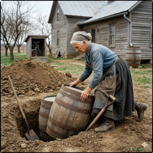 Every day, the old woman buried water barrels underground. During the dry season, she bought dozens of barrels and buried them all over…