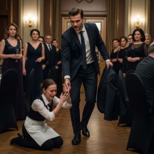 I was on my knees, soaked in champagne, when she leaned down and whispered, “This is all you’ll ever be.” Two hundred people…