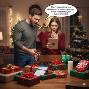 “They’re canceling your kids’ Christmas gifts,” my husband snapped, slamming his phone down. “I’m done paying for your family.” I stared at the…