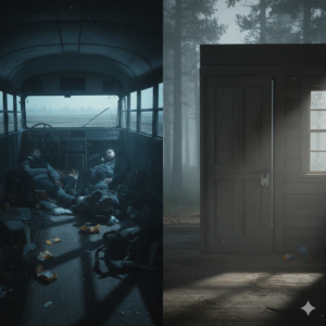 The first knock came just before dawn. It wasn’t the kind of knock you expect when you’re sleeping inside an abandoned Greyhound bus…