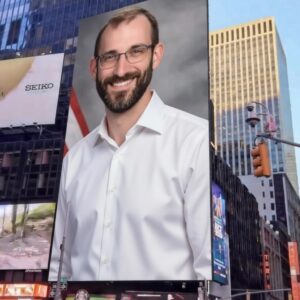 in the heart of New York City, where flashing lights and towering screens compete for global attention, one image recently stopped passersby in…