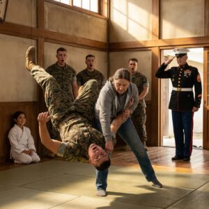 “That’s Your SEAL Mom?” Five Black-Belt Marines Laughed at a 9-Year-Old — Until the Woman in Jeans Took Off Her Jacket and They…