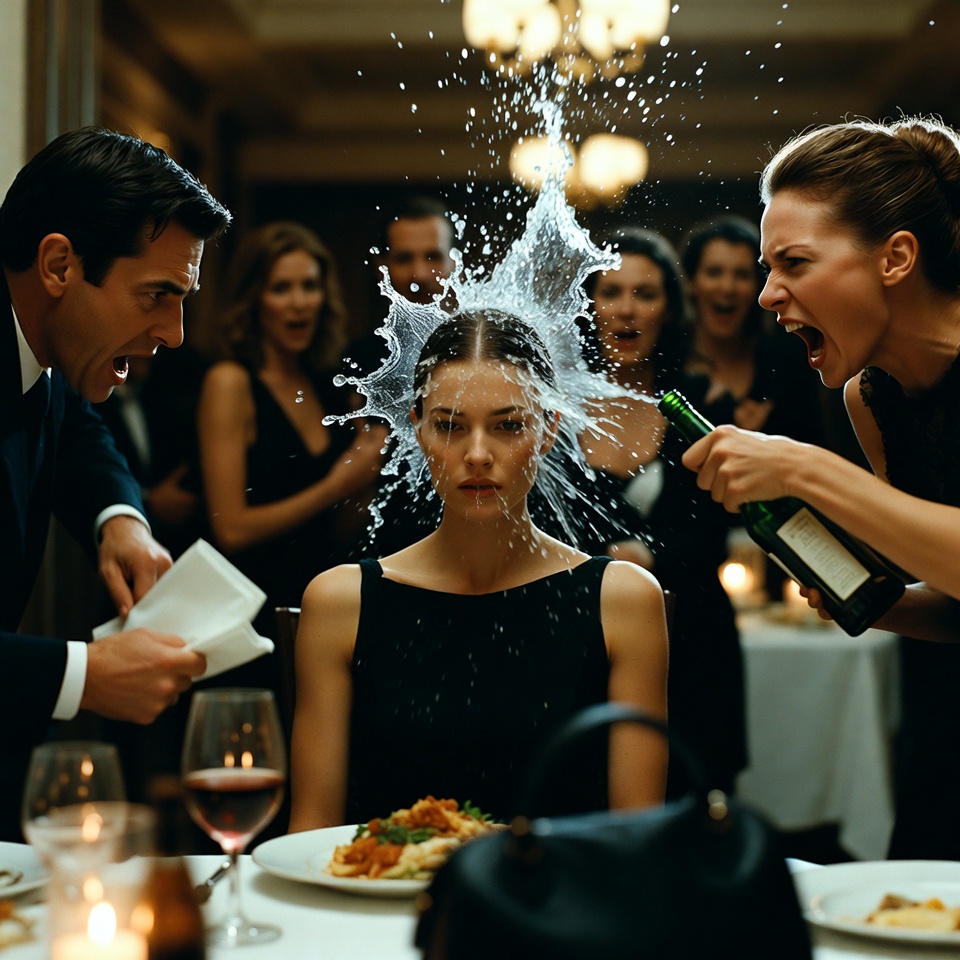 The ice water hit me full in the face. It soaked my silk blouse. It dripped down my hair, ruining my blowout. Ice cubes slid down my dress.