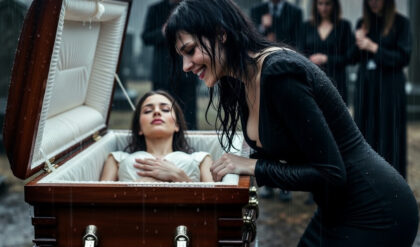 A surge of pure, blinding rage ignited in my chest. The audacity. The sheer, sociopathic cruelty of desecrating my daughter’s casket with her filthy, stolen victory. My hands balled into fists, my fingernails biting into my palms so hard they drew blood. I took a breath, preparing to step forward, to drag her away by her perfectly styled hair and cast her out of the cemetery.