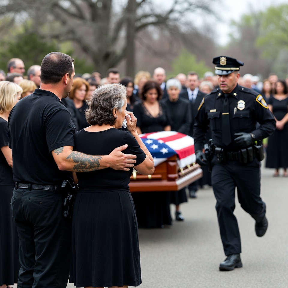 The police arrived in ten minutes. Sirens wailed, shattering the funeral’s decorum.