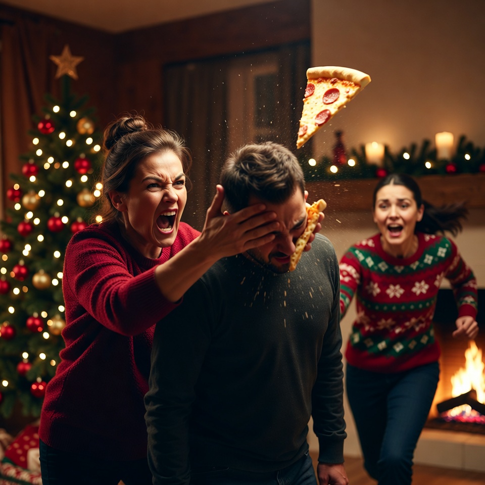 The pizza slice didn’t just hit Jack’s face; it slapped the soul of the entire Christmas party.