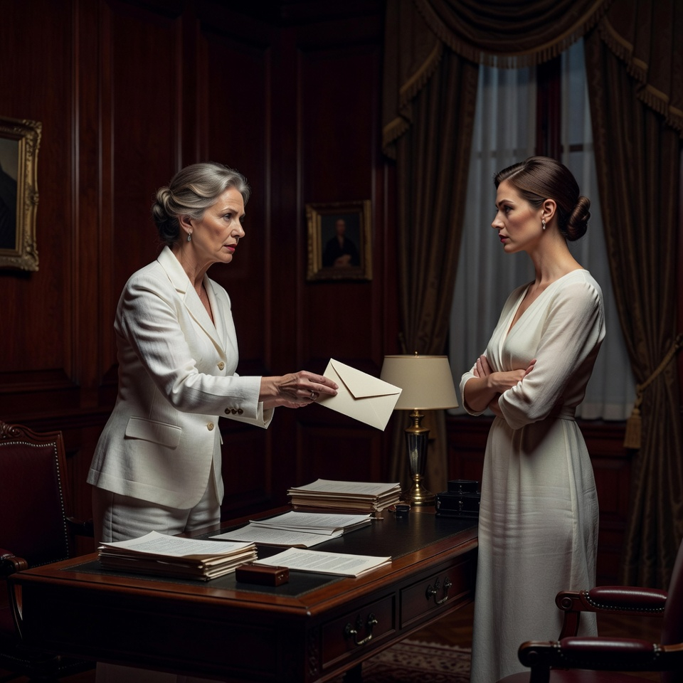 The air in the study felt as if it had been sucked into a vacuum. Victoria collapsed into the leather chair, her white suit suddenly looking like a surrender flag.