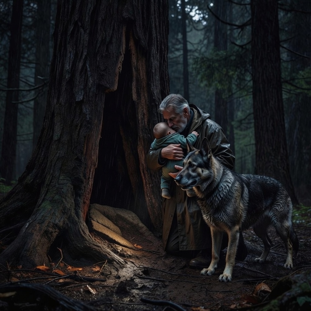 I found someone’s newborn shivering in a tree hollow – and my retired K-9 looked at the baby like he recognized him.