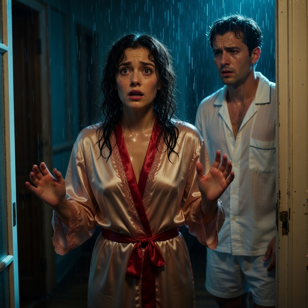 She was standing on my welcome mat, shivering violently. She was wearing a plush, oversized white hotel bathrobe that was completely, utterly soaked. Water dripped from the hem, pooling on the hardwood floor. Her hair, a tangled mass of dark curls, was plastered to her cheeks and neck, thick with half-rinsed lavender shampoo. Droplets of freezing water slid down her collarbone, disappearing into the V-neck of the robe.