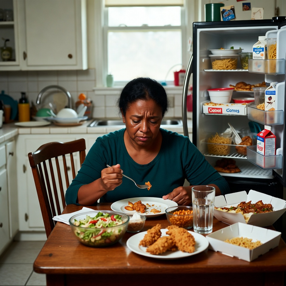“Mom, please just eat all the leftovers in the fridge, okay? I want to clear it out for the groceries coming tomorrow. Don’t wait up.”