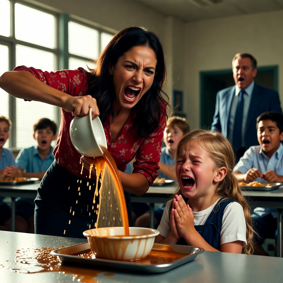 A father walks into his daughter’s school lunchroom expecting to share a warm moment… but what he sees instead shatters him. A terrified little girl. A cold, lonely table in the corner. And a teacher—his own wife—standing over her like a shadow.