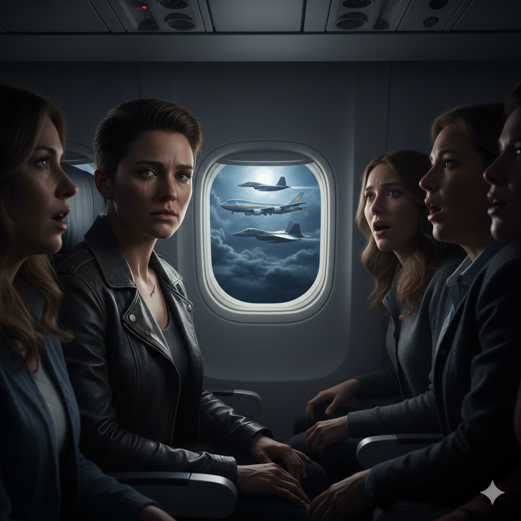 When they took off again, two sleek silhouettes appeared outside the windows—Air Force One, unmistakable, flanked by fighters.