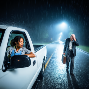 Sheets of water slammed against the windshield of Tiana Brooks’s old white pickup truck as she drove home from her second shift.
