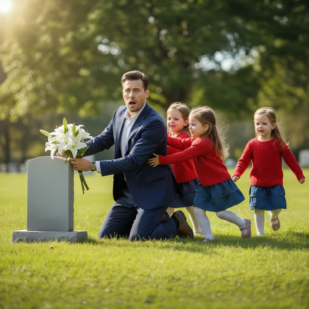 He Came to His Ex-Wife’s Grave to Say Goodbye — But Three Triplet Girls Appeared and Called Him “Dad,” and What Happened Next Left Him Frozen