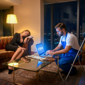 Daniel was inside, talking loudly on the phone about renovation plans. Rebecca was measuring the living room, discussing “modernizing the space.”
