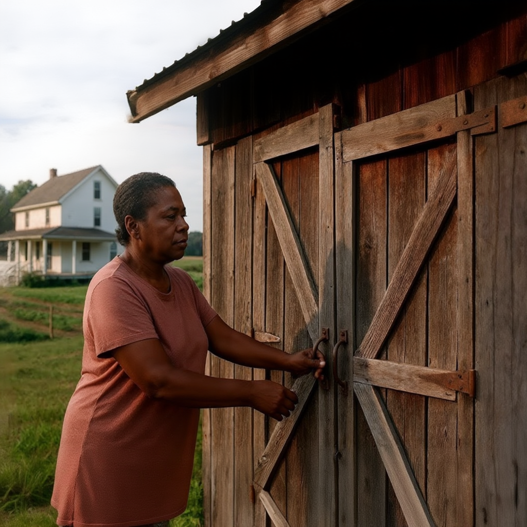 The barn door stood before her—tall, scarred, locked with the same rusted padlock she had stared at for decades.