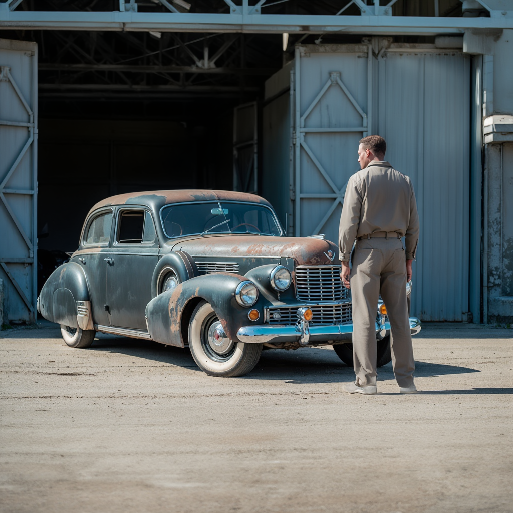 Rust had claimed most of its once-proud body. The tires were flat, the chrome dulled to a tired gray. But even under decades of neglect, the lines were unmistakable — long, elegant, deliberate.