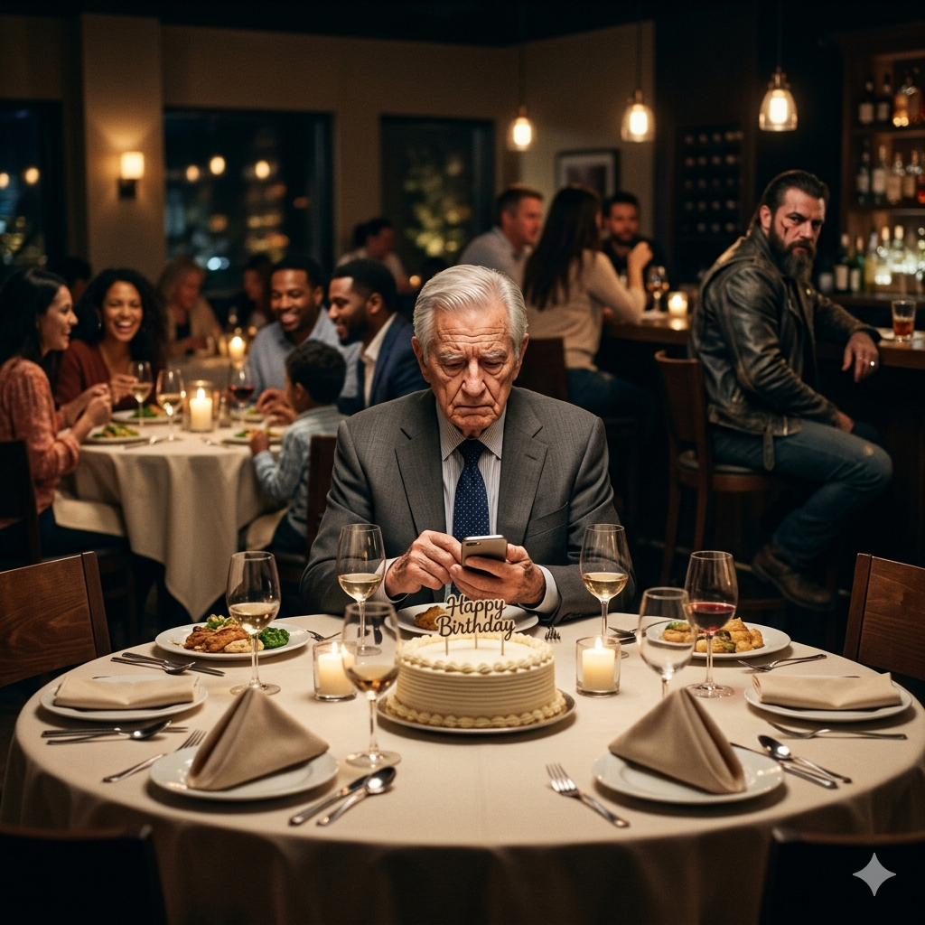 Old Man Was Eating Alone at His Own Birthday Dinner — Biker Heard Him Cancel Reservations For All