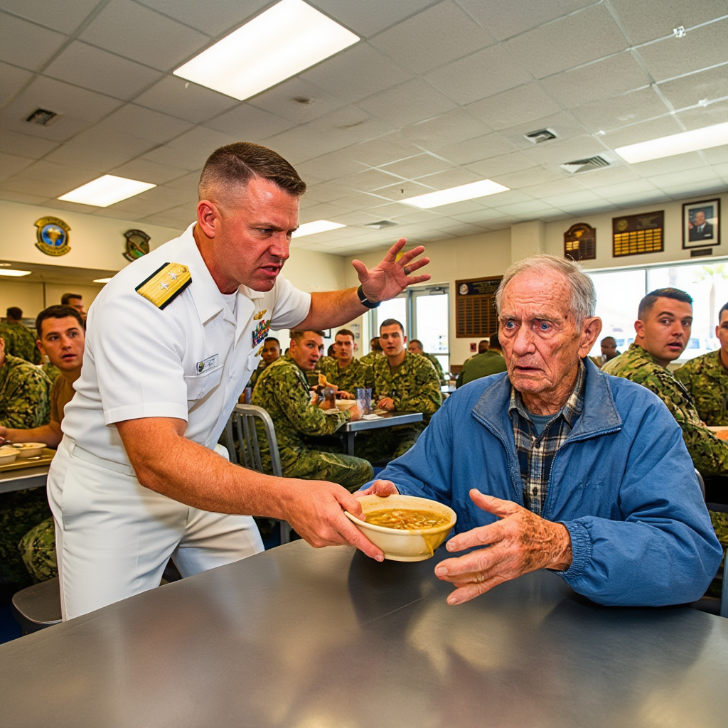 Naval Base Coronado shimmered under the California sun, rows of white chairs lined up neatly on the parade ground. Families sat fanning themselves, officers stood in crisp uniforms, and somewhere near the back—almost deliberately out of place—sat an old man in a worn jacket.