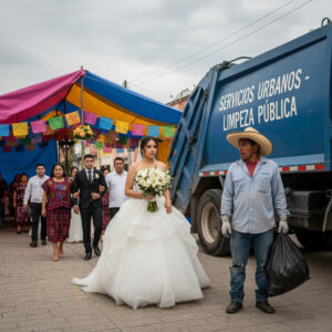The groom’s entire family left the wedding ceremony midway through when they discovered the bride’s parents were “garbage collectors.” Just then, a garbage truck arrived, the bride’s father stepped out… and everyone fell silent when they saw what he was carrying in his hands.
