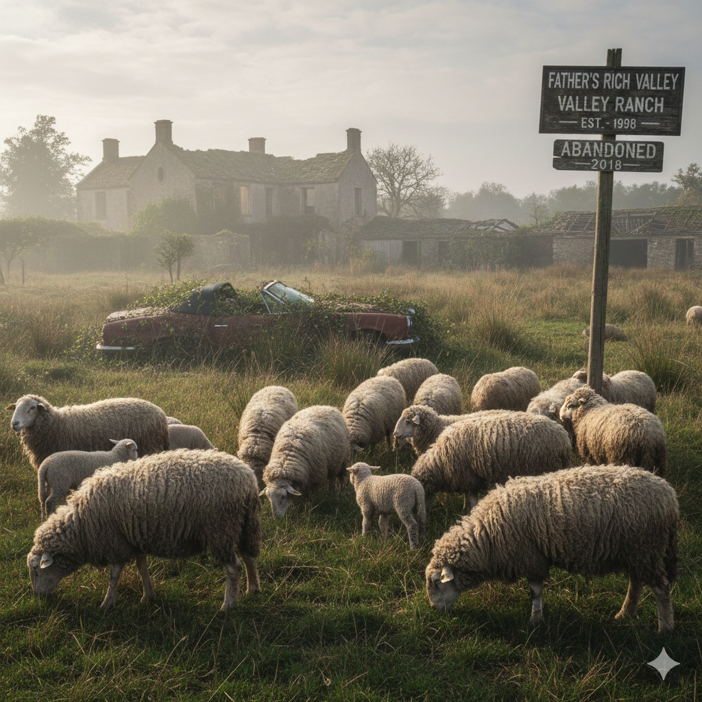 Six years since he bought 3,000 acres of high plains, built a model-perfect sheep ranch “for charity,” dumped five hundred genetically enhanced Merino sheep on it… and then walked away.
