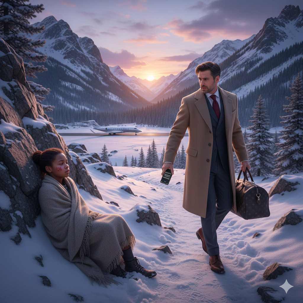 Her little body hit snow, soft but cold enough to burn. The helicopter lifted, its blades storming the air around her. Ava stumbled to her feet, coughing, screaming her father’s name until the machine became a black dot swallowed by the mountains.