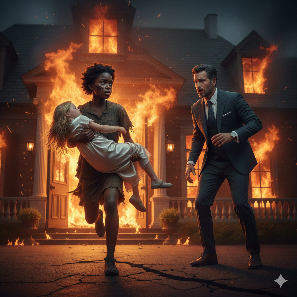 Hours later, firefighters contained the blaze. Half the mansion was gone. Logan stood outside, arms crossed, watching the flames die. Reporters had swarmed already.