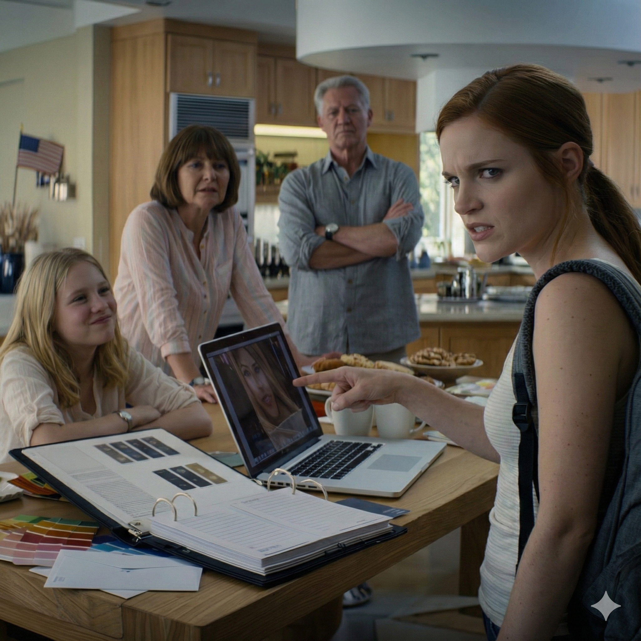 When I walked through the door, the air was thick with the smell of my mother’s “misery pot roast.” Preston was there, looking uncomfortable in the living room I had furnished. Sienna was holding a swatch of grey carpet samples.