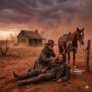 Part I: The Ghost of the Dust The sky over Cimarron County hadn’t bled a drop of rain in eighteen months. It wasn’t blue anymore; it was a bruised, hazy copper, choked with the fine silt of dead dreams. Evelyn…