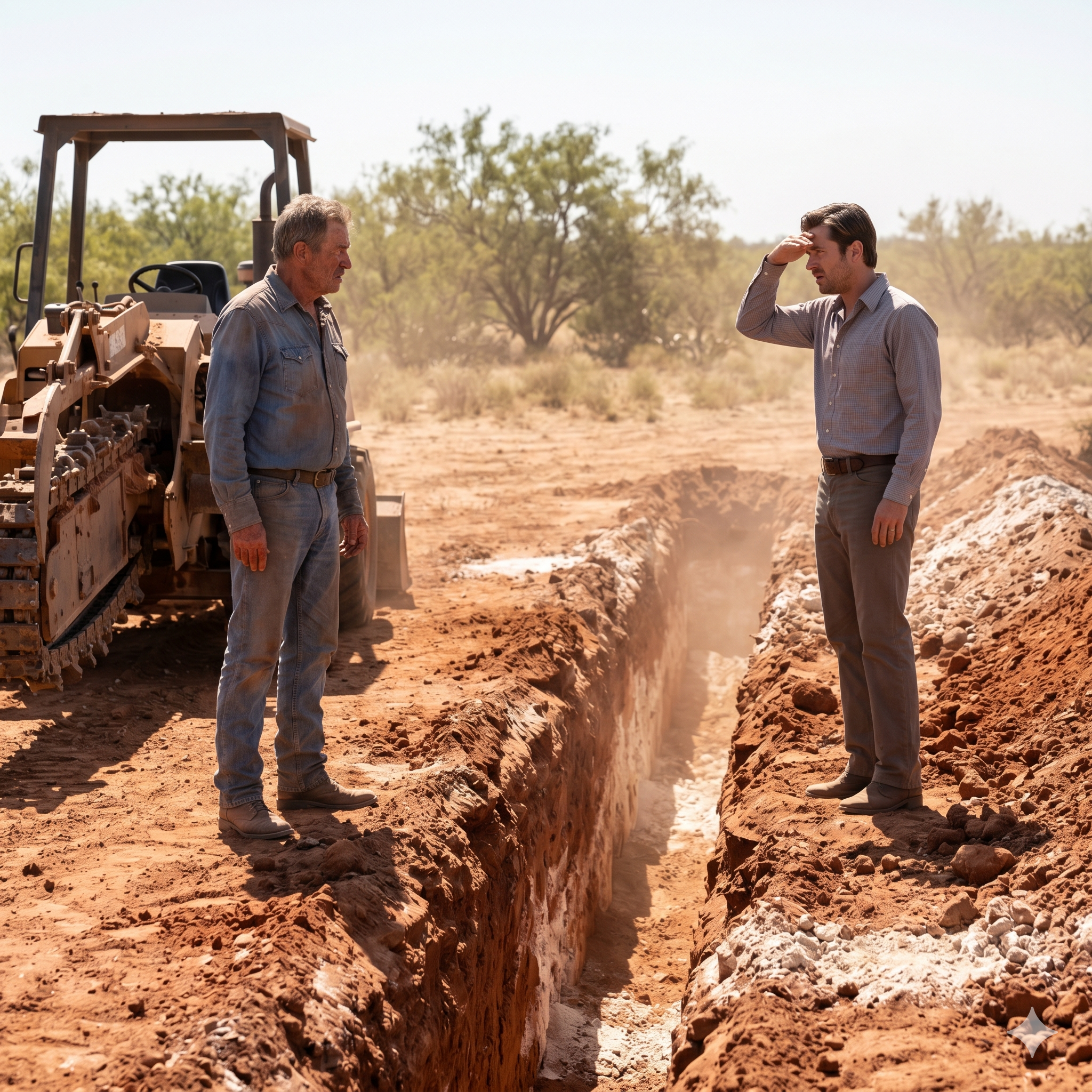 Jed didn’t stop the backhoe. He pulled a lever, the hydraulic hiss sounding like a dying gasp, and dumped a bucket of red earth ten feet away from the rim of the trench. He shut the engine down. The silence that followed was heavy, vibrating with the heat of the afternoon.