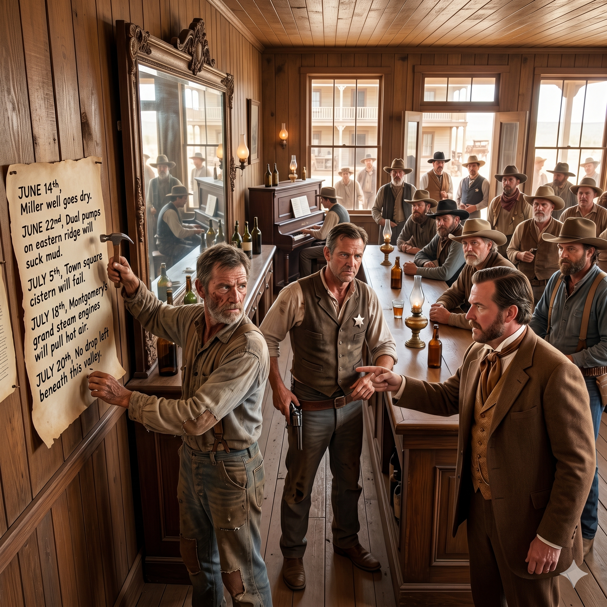 “For the water,” Abram replied plainly. He pointed a calloused finger at the parchment. “June 14th, the Miller well goes dry. June 22nd, the dual pumps on the eastern ridge will suck mud. July 5th, the town square cistern will fail. And on July 18th, Montgomery, your grand steam engines will pull nothing but hot air. By July 20th, there won’t be a drop of water left beneath this valley.”