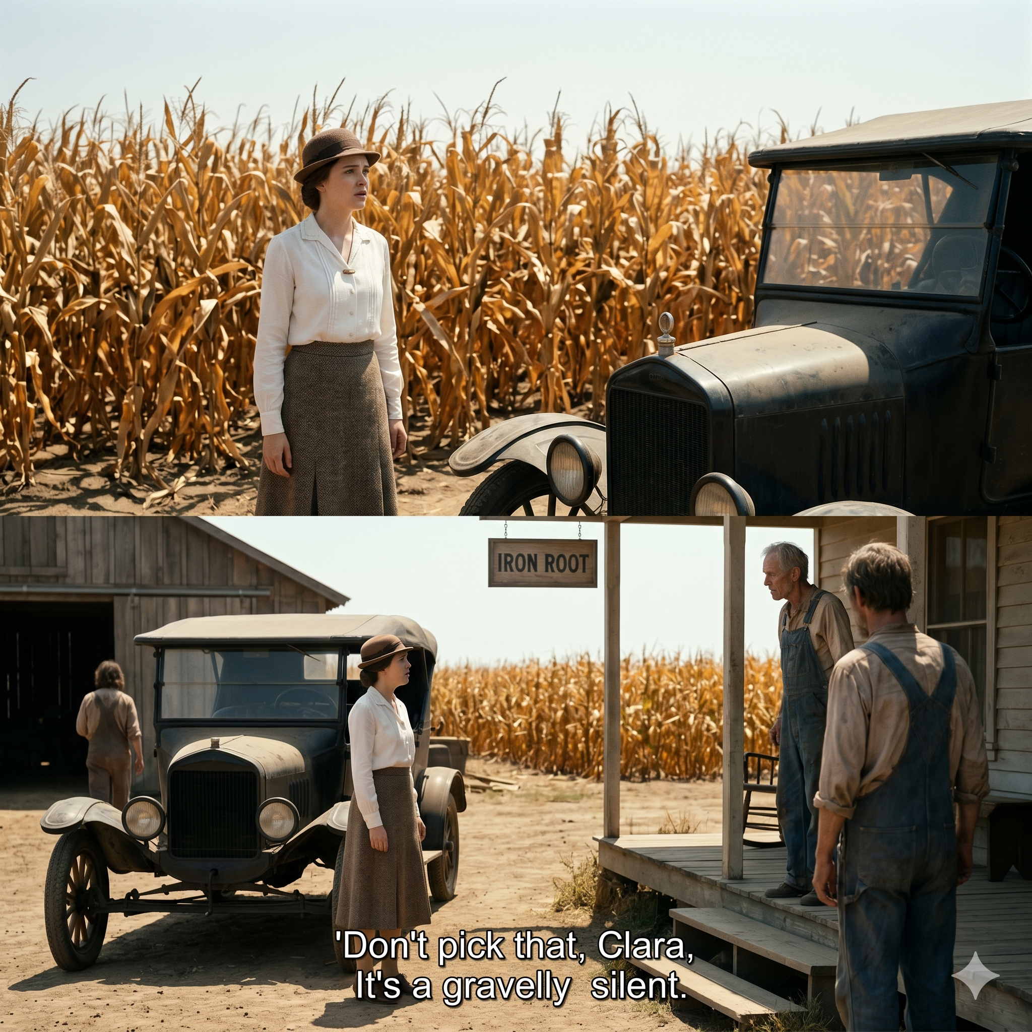 The drought of 1924 had turned most of the Oklahoma Panhandle into a graveyard of ambition, but Caleb Miller’s ranch, the “Iron Root,” was different. While the neighbors watched their livelihoods wither into grey dust and blow away toward the horizon, Caleb’s corn stood tall. It wasn’t exactly green—it was a strange, sickly shade of amber, like gold left too long in a dark room—but it didn’t fall.