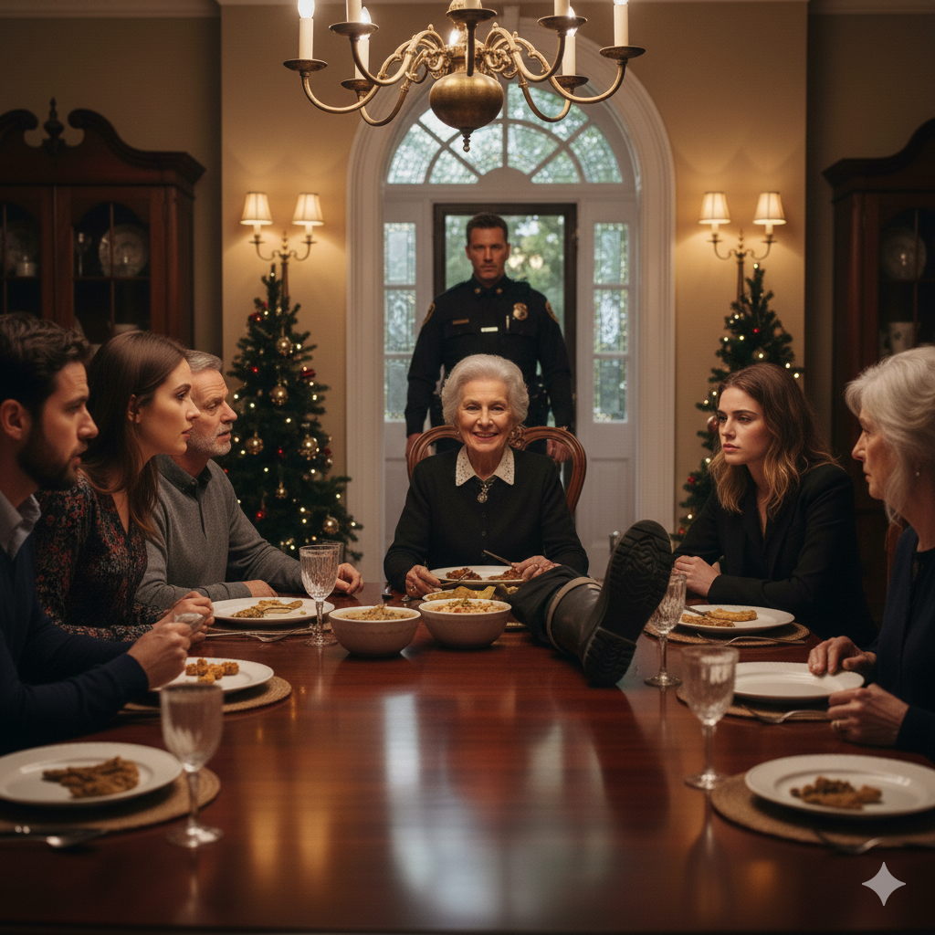 I limped into Christmas dinner, my foot in a cast. My daughter-in-law had pushed me on purpose. My son laughed at me. Then the doorbell rang. I smiled. “Come in, Officer.”