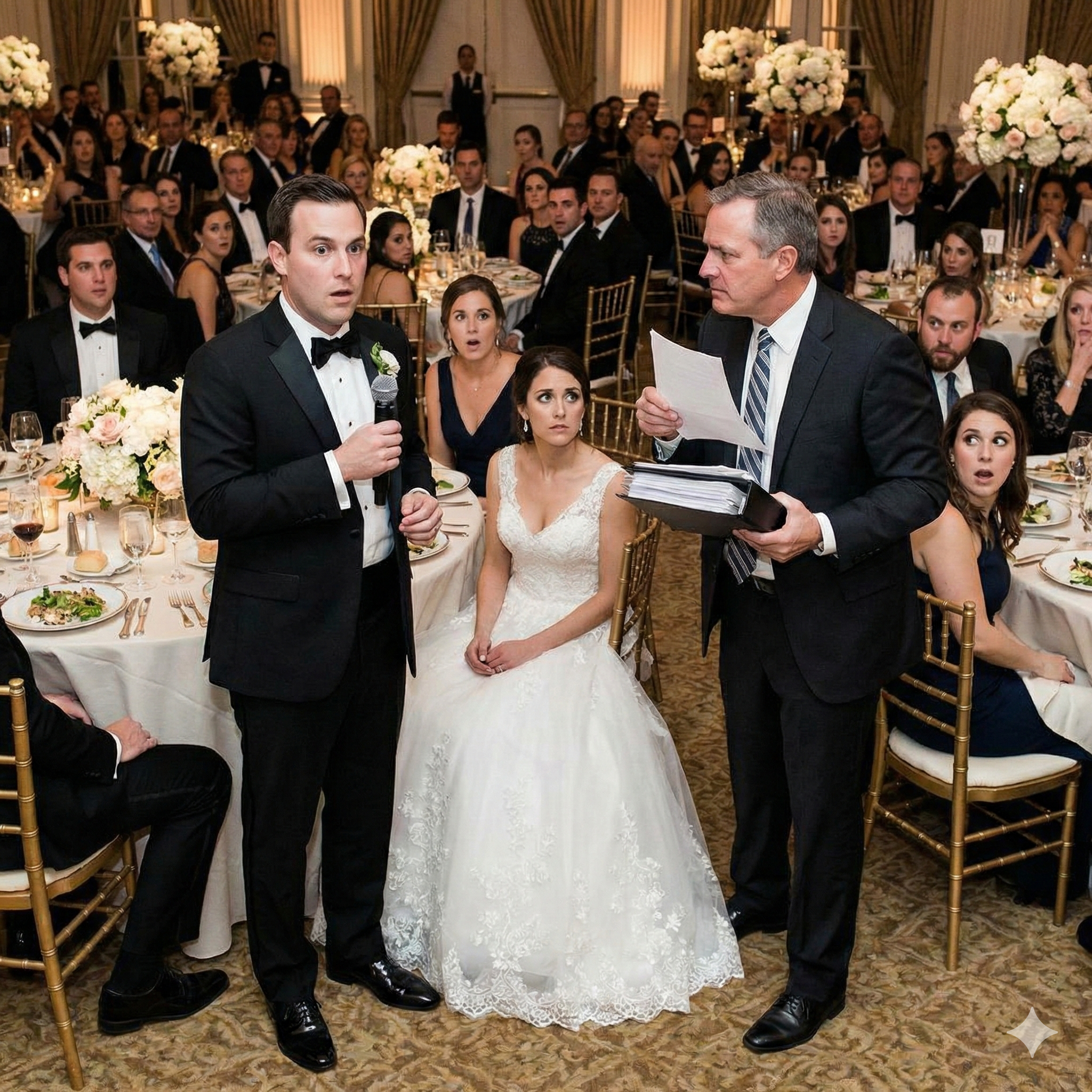 Lawrence lunged for the microphone, but Caleb was faster. He stepped onto the stage, placing himself between me and my father.