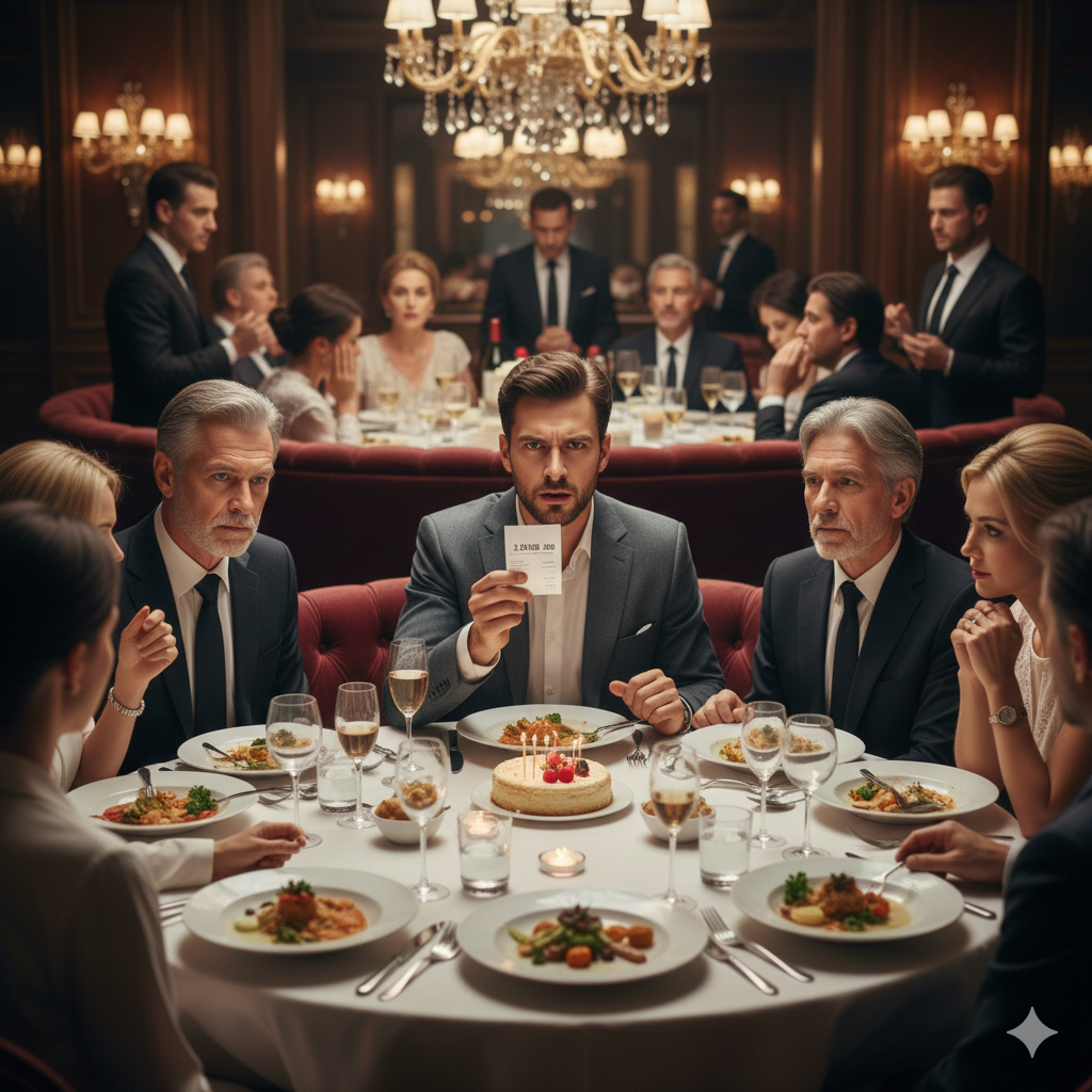 Two hours in, after dessert (a tower of profiteroles lit with a sparkler), a leather-bound bill folder was placed discreetly at the head of the table.
