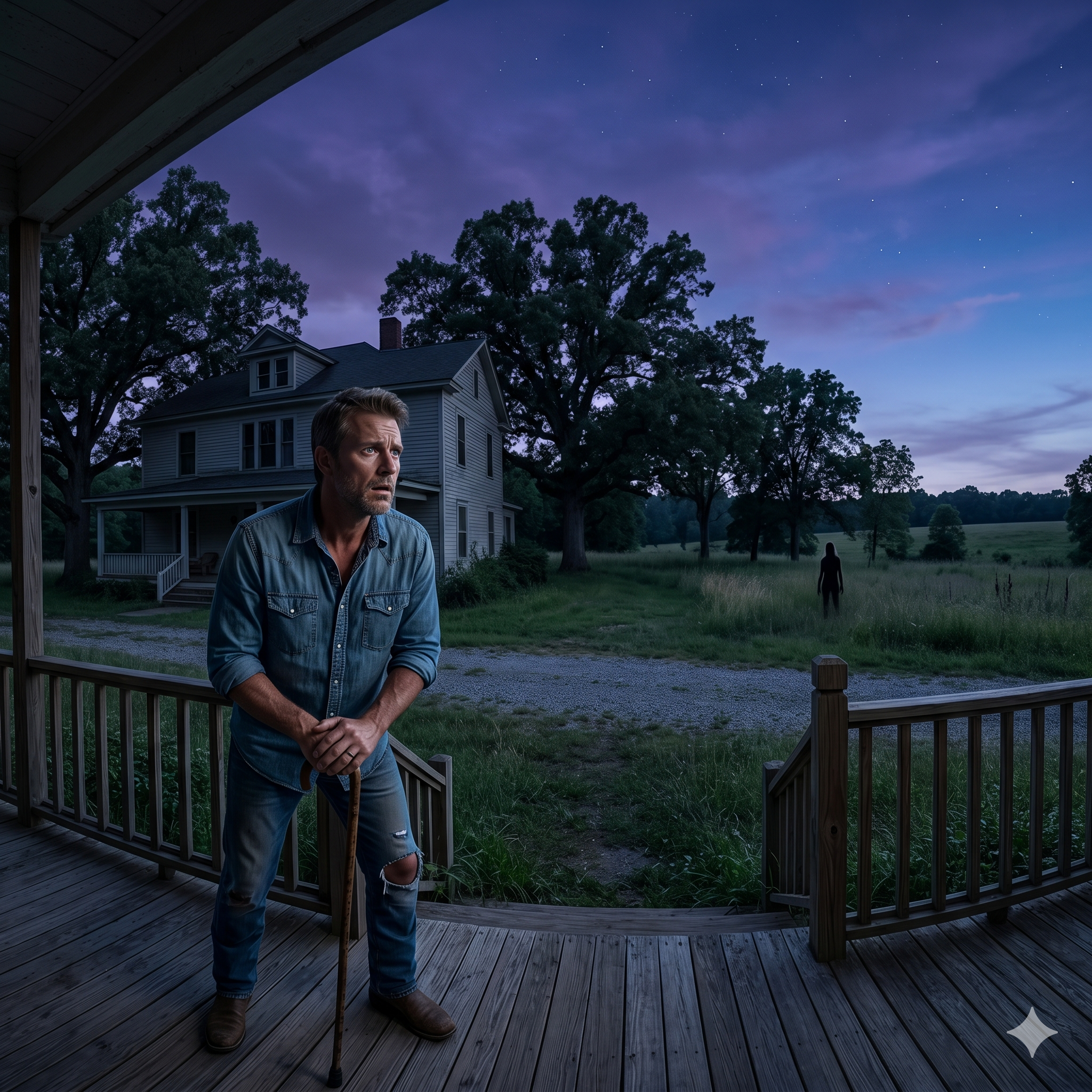 Lucas was on his porch, sipping lukewarm coffee and looking over the overgrown north pasture, when a silhouette appeared at the edge of his property. It was a man, thin as a rail, wearing denim overalls that looked like they’d been washed in wood ash.