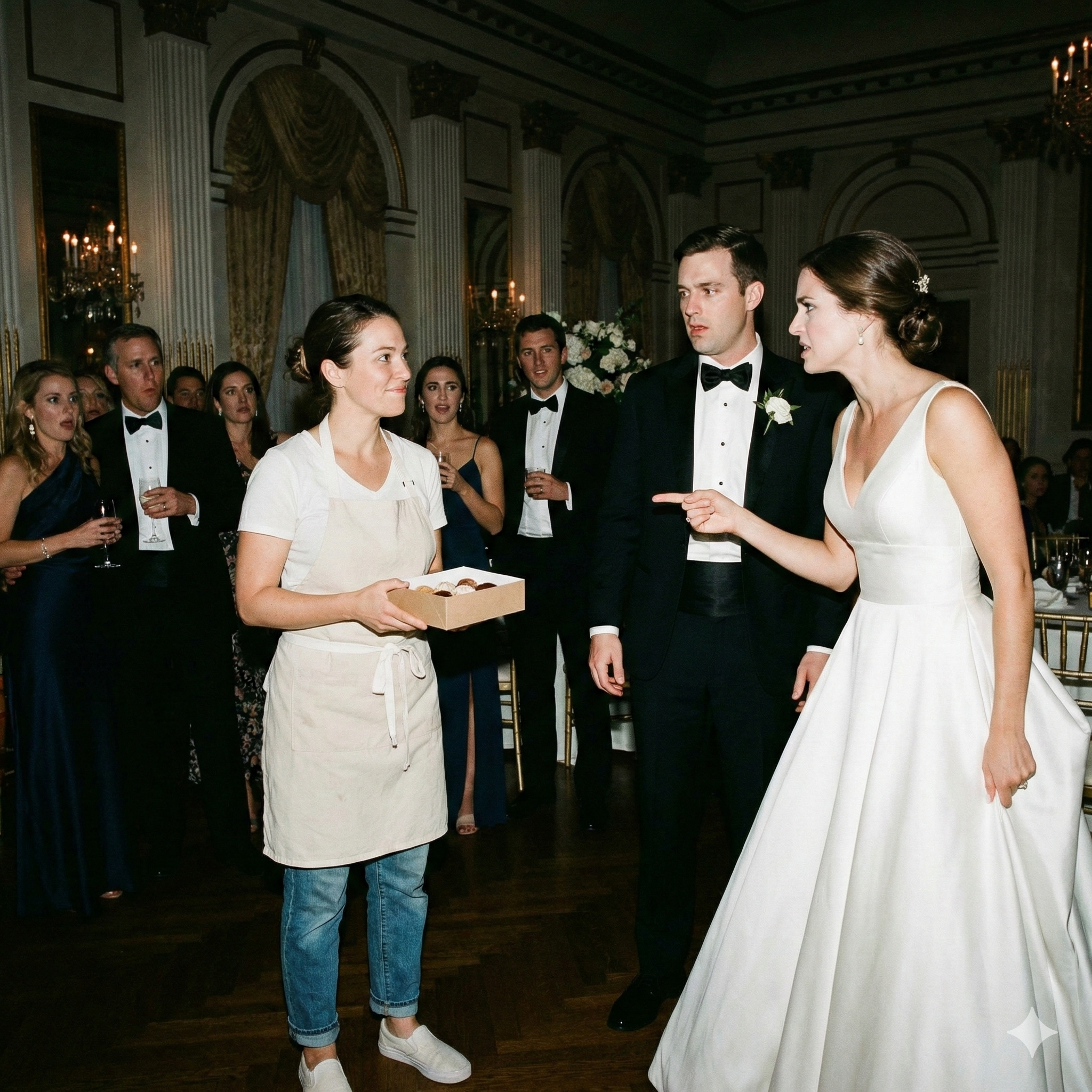 I walked over to my sister, who was clutching her $50,000 dress as if it could save her. I handed her the white box.
