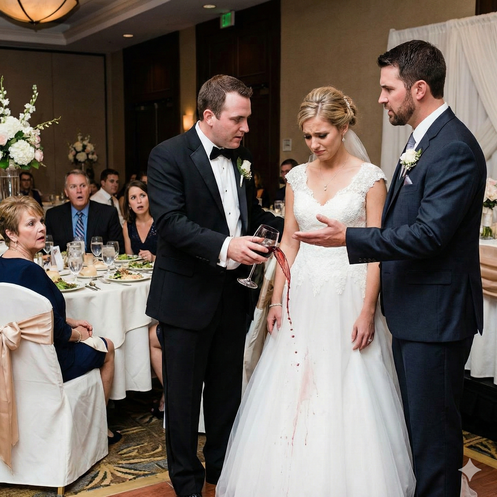 It didn’t just splash. It drenched. The deep, crimson liquid bloomed across the front of my ivory gown like a fresh wound.