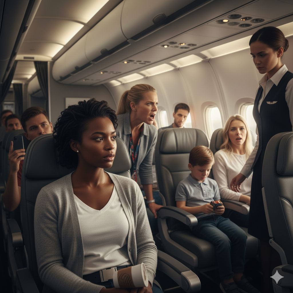 Tianna froze. She felt her stomach drop, her face flush hot. She’d heard slurs before — in school, on the street — but never like this. Never in a sealed metal tube 30,000 feet in the air with nowhere to walk away.