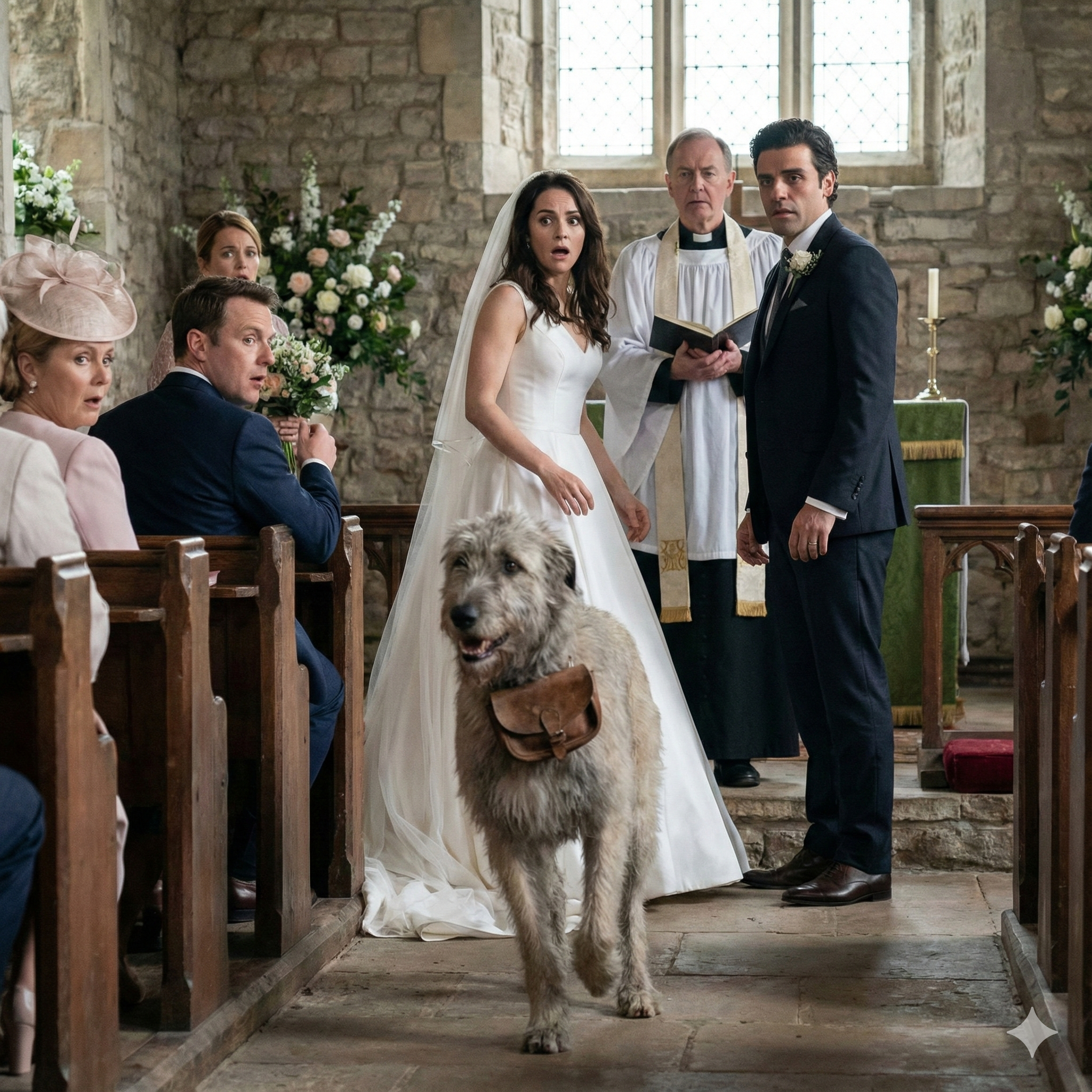 He bolted down the aisle, dragging a broken leash, eyes wild. Gasps rippled through the crowd.