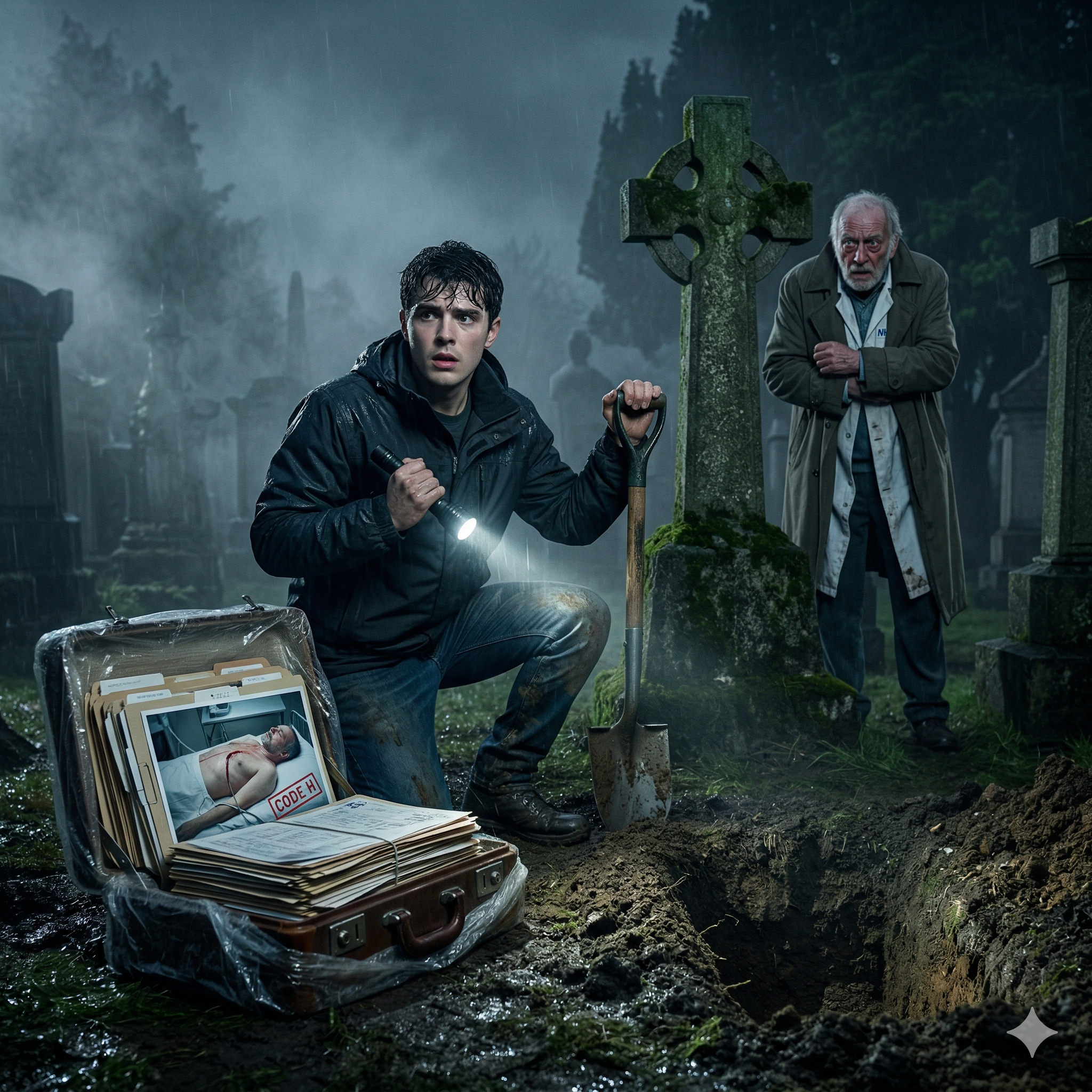 I sat back on my heels, the Glasgow drizzle blurring my vision. Someone had dug up my father’s grave, checked the coffin, and then… buried it again? No. The mound was higher than before. There was more dirt here than there should be.