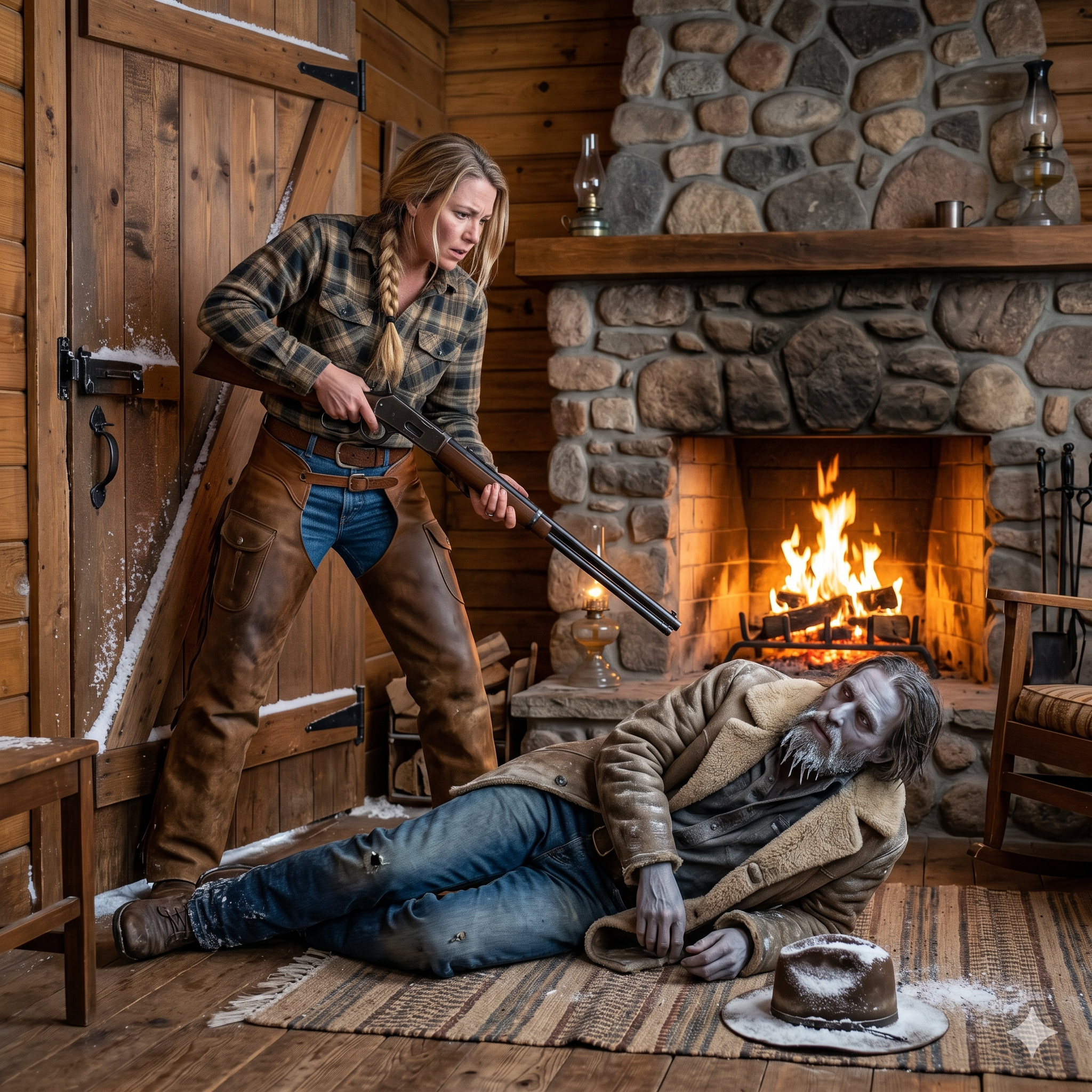 She pulled the heavy iron bolt back and cracked the door. A wall of white air surged in, smelling of frozen pine. A figure slumped against the frame, a man draped in a tattered sheepskin coat that was soaked through and frozen stiff. He fell forward, landing face-first on her rug.