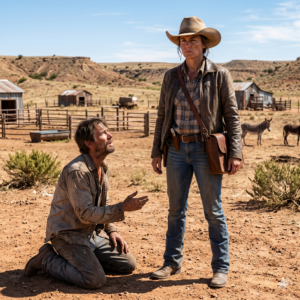 Cassidy stood over him, the rifle barrel lowered but not put away. The irony was a physical weight in the room. The man who had once owned every acre from here to the horizon was now a beggar on the only porch left standing in the storm—and it belonged to the woman he had left for dead.