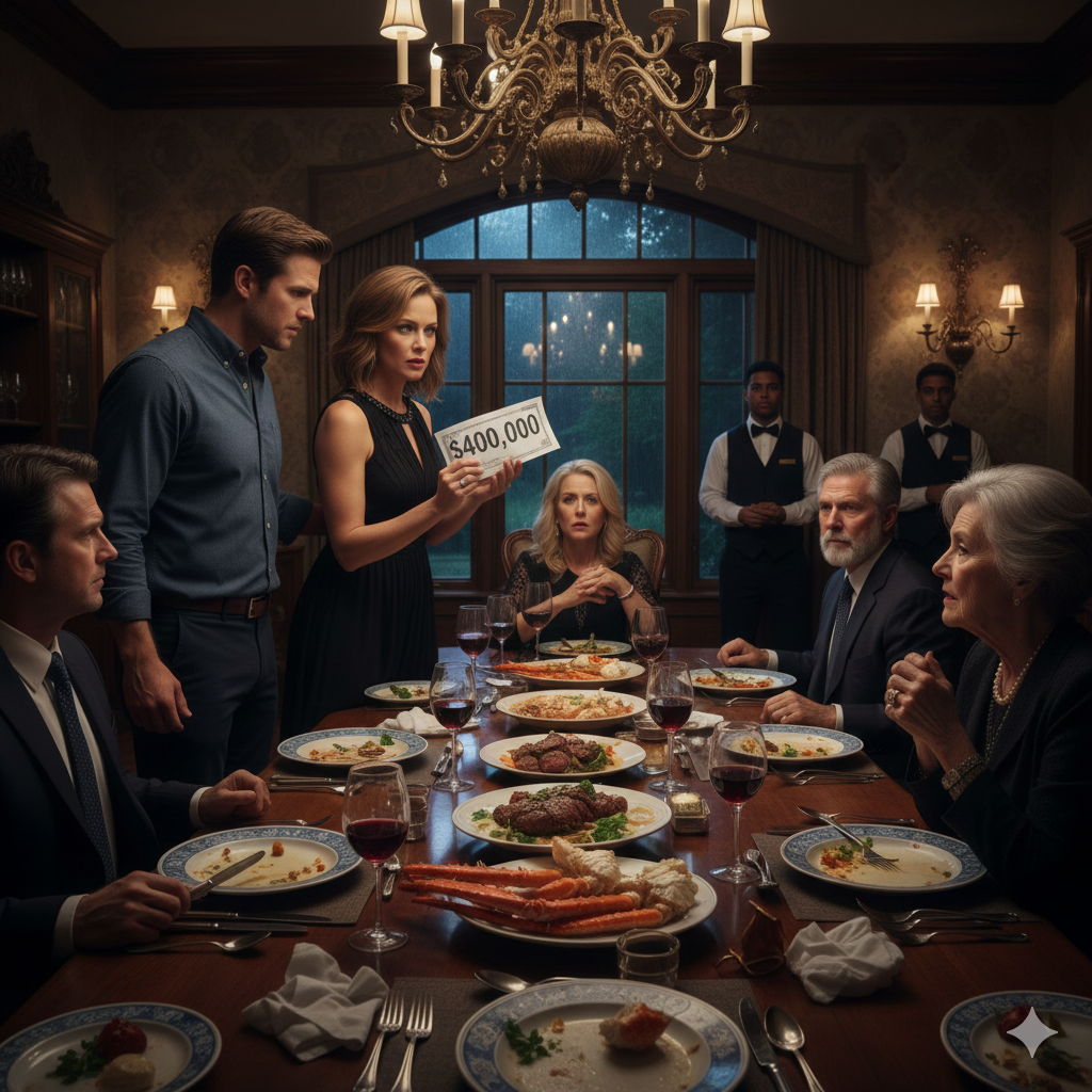 The night my in-laws threw a lavish celebration for selling their Ohio ranch, everyone walked away with a $3 million payout—everyone except my husband and me. But when the $400,000 bill for king crab, wagyu, and top-shelf wine arrived, my mother-in-law turned to me and said, “You can cover this, right?” Three minutes later…