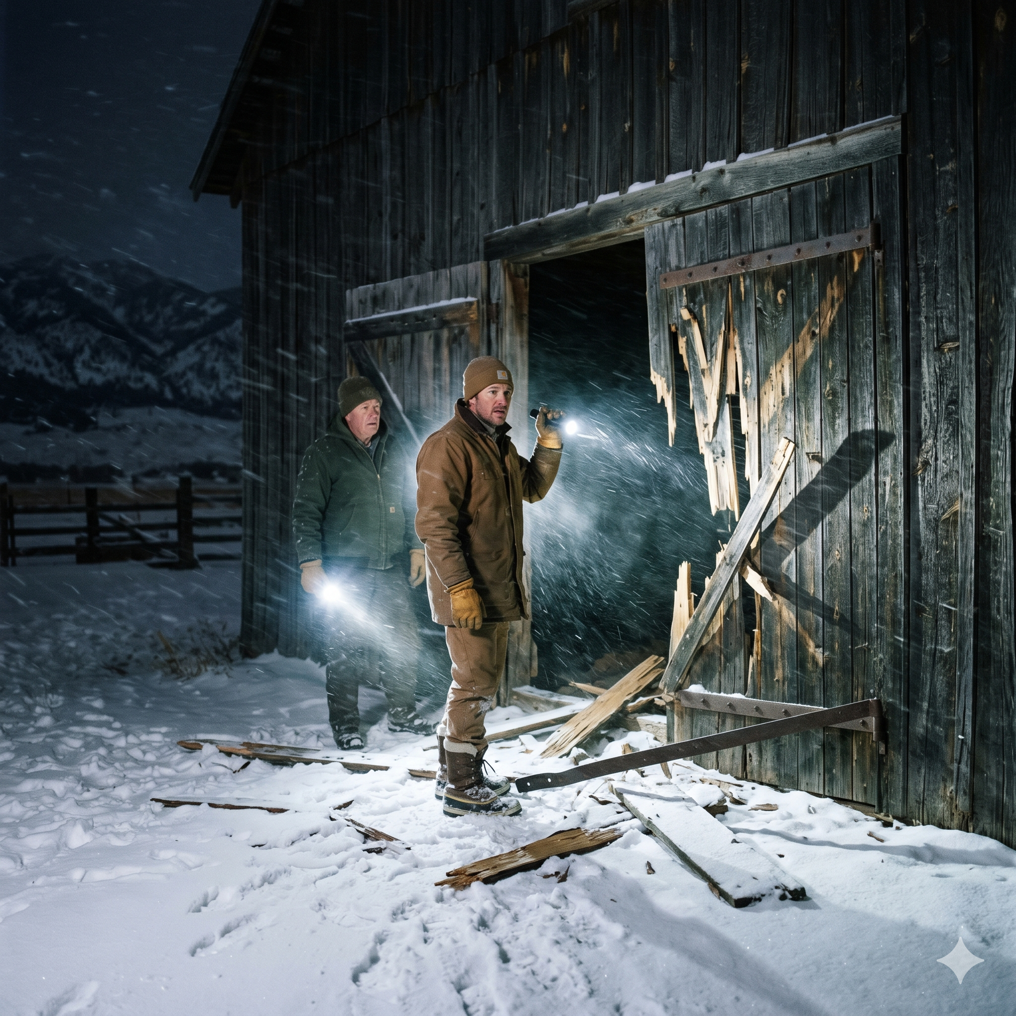 Silas threw his truck into park, stepped out into the snow, and didn’t even look at me. His pale blue eyes were locked directly on the Old East Barn in the distance. He saw the shattered doors.