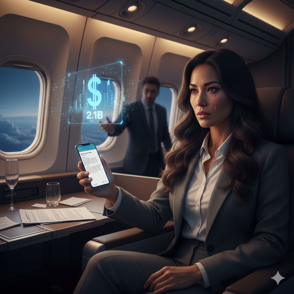 I was thirty-seven thousand feet above the Atlantic, cabin lights dimmed, most of business class snoring behind eye masks and half-finished glasses of Bordeaux. My laptop was still glowing from the last document I’d edited—a piece of the twelve-contract bundle that sealed the $2.1 billion deal I’d just closed.