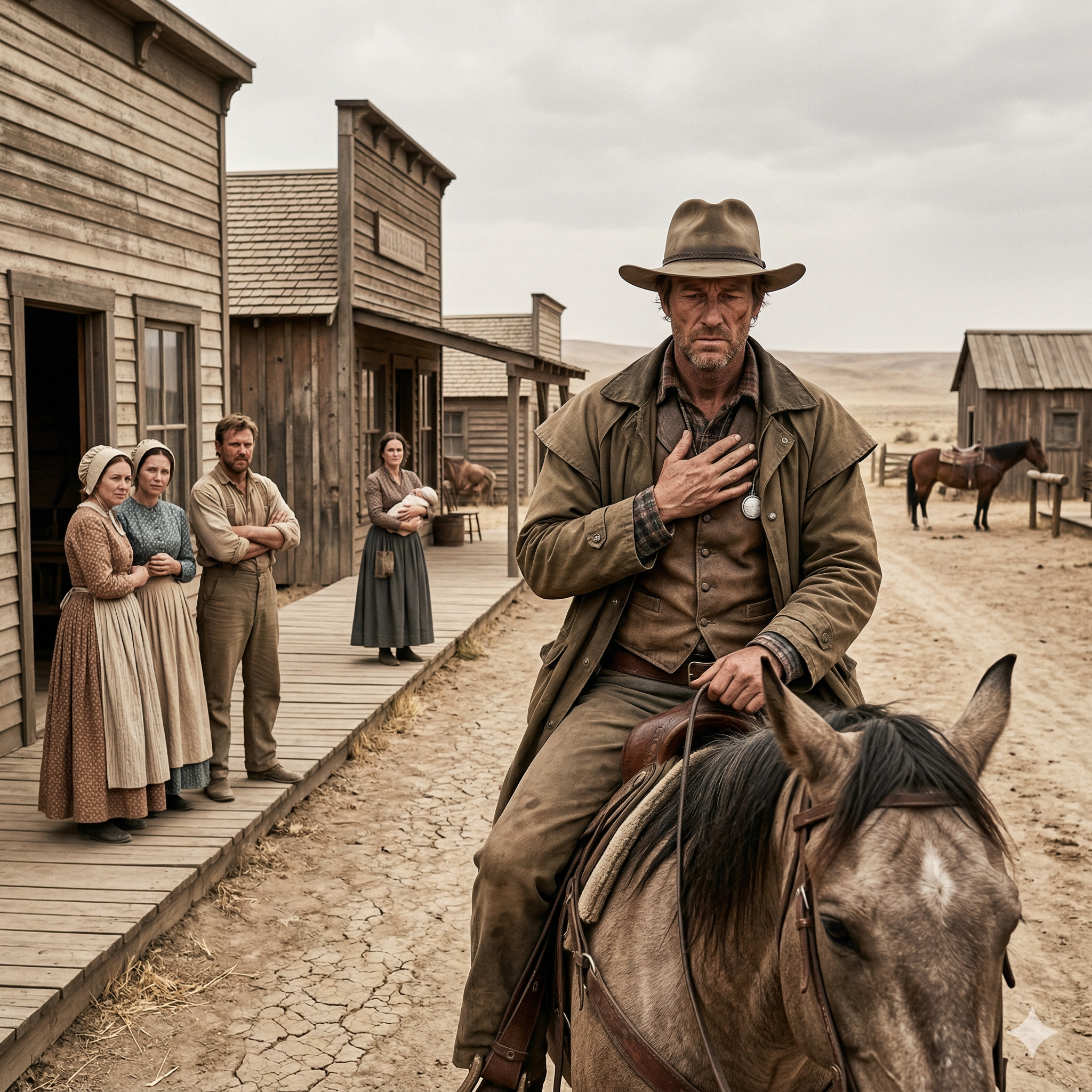 As his gelding’s hooves hit the timber boardwalk of the main street, the town of Oakhaven seemed to hold its breath. It was a familiar ritual.
