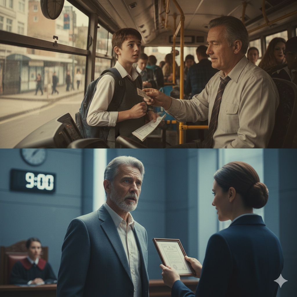 “I… I can’t find it,” the boy whispered, his face turning a deep shade of red. “My bus pass. I must have left it at the library. Please, I have to get to the community college. It’s my entrance exam for the pre-law program. If I miss it, I lose my scholarship.”